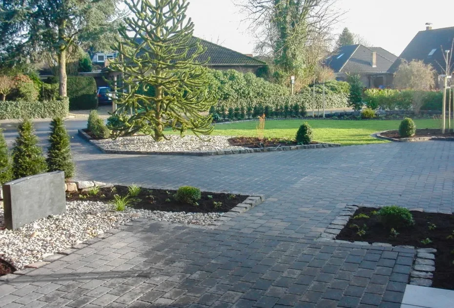 Wir pflastern Zufahrten, Stellplätze und Wege, sodass Sie sauber und trockenen Fußes ins Eigenheim gelangen. Gerne gestalten wir Ihnen auch Ihre neue Terrasse oder Sitzecke, damit Sie Ihr LEBEN MIT GRÜN noch besser genießen können.